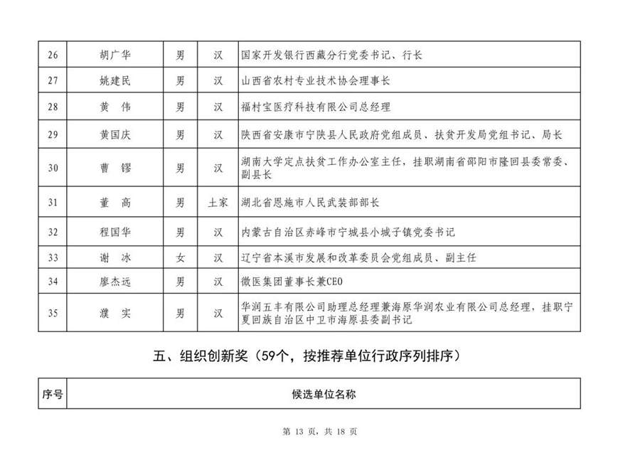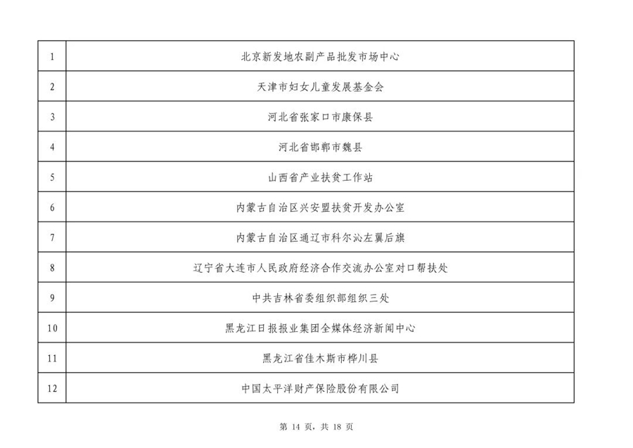2019年全國(guó)脫貧攻堅(jiān)獎(jiǎng)初評(píng)候選人(單位)