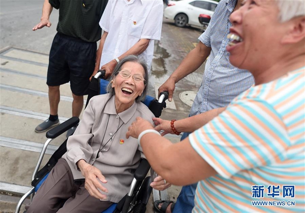 說起呂銀芬健康長壽的“秘密”,她爽朗地告訴記者,國家富強、生活安定就是最大的踏實和福氣?!澳赣H退休后,生活很有規(guī)律,每天保持學習的習慣,到了90歲還堅持讀書閱報,收看《新聞聯(lián)播》是每天的‘必修課’?!斌每姑勒f,國家大事、世界大事,母親比自己知道得要快、多。