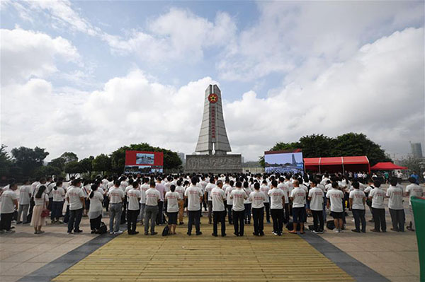 6月11日,“記者再走長(zhǎng)征路”主題采訪活動(dòng)啟動(dòng)儀式在江西于都舉行。新華社記者 周密 攝