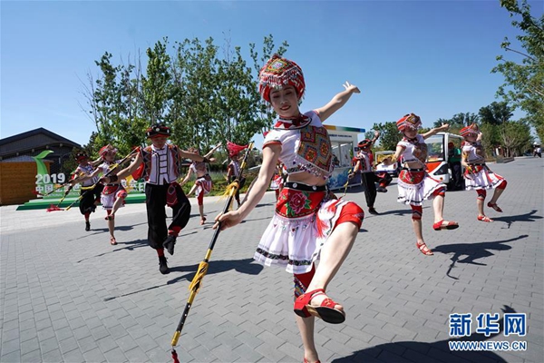 7月4日,演員在“湖北日”活動(dòng)上表演舞蹈。當(dāng)日,2019年中國(guó)北京世界園藝博覽會(huì)“湖北日”活動(dòng)在北京世園會(huì)園區(qū)舉行。新華社記者 鞠煥宗 攝