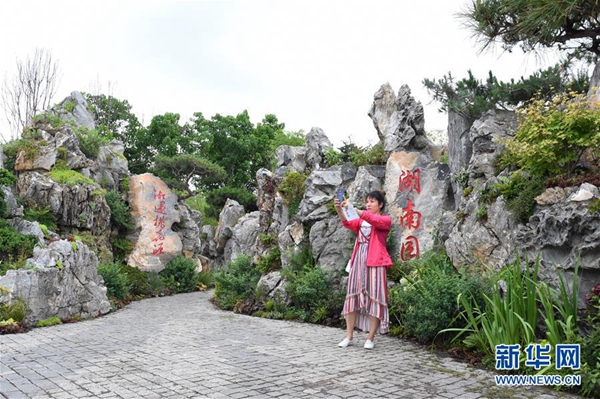 7月7日,游客在湖南園中參觀。當(dāng)日,2019年中國北京世界園藝博覽會“湖南日”活動在北京世園會園區(qū)舉行。新華社發(fā)(任超 攝)