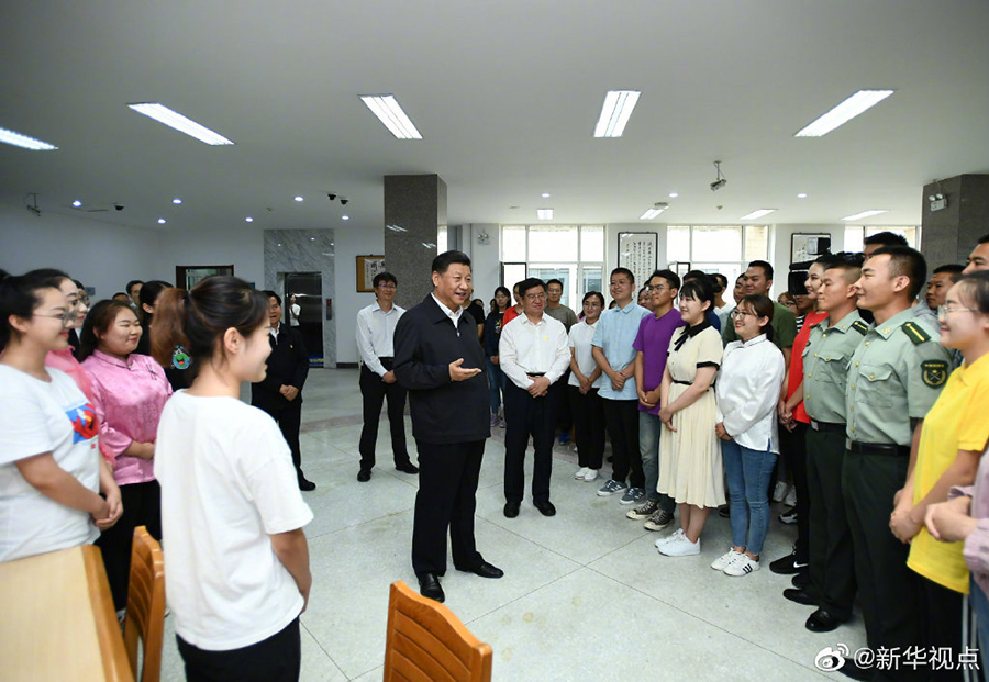 16日上午,正在內(nèi)蒙古考察調(diào)研的習(xí)近平總書記來到內(nèi)蒙古大學(xué),走進(jìn)圖書館同學(xué)生們親切交談。習(xí)近平指出,少年強(qiáng)則中國強(qiáng)??吹侥昵嗳私】德斆鳌^發(fā)向上,充滿正能量,心里十分高興。長江后浪推前浪,青出于藍(lán)而勝于藍(lán),未來是屬于年青人的。在中華民族偉大復(fù)興的進(jìn)程中,你們生逢其時(shí),何其幸也。再過30年,到本世紀(jì)中葉實(shí)現(xiàn)第二個(gè)百年奮斗目標(biāo)的時(shí)候,你們正好是國家的骨干和棟梁。大家要志存高遠(yuǎn)、腳踏實(shí)地,學(xué)好知識,打好基礎(chǔ),增長才干,將來為中華民族偉大復(fù)興貢獻(xiàn)自己的智慧和力量。 (文字:張曉松、朱基釵 攝影:謝環(huán)馳、李學(xué)仁)