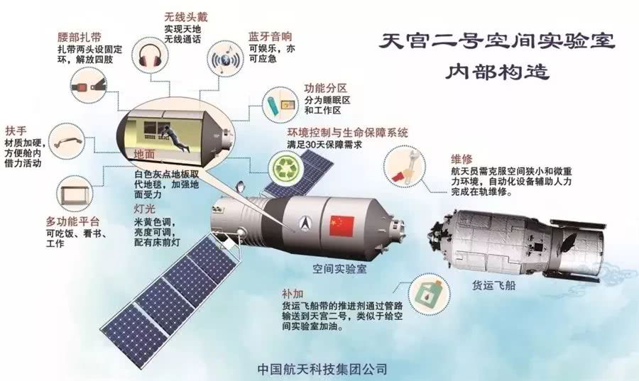 天宮二號空間實驗室內(nèi)部構(gòu)造(來源:中國航天科技集團(tuán)微信公眾號)
