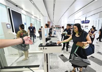 7月19日,北京大興國際機場首次綜合演練,安檢采用自助身份驗證系統。本版攝影/新京報記者 陶冉