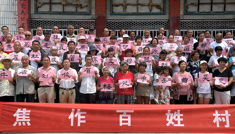 百間房村每個姓氏的代表在拍攝“全家?!保?月26日攝)。? 新華社記者李安攝