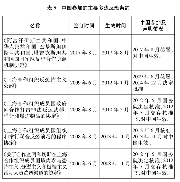 中國(guó)積極開展國(guó)際和地區(qū)反恐合作。加強(qiáng)上海合作組織框架內(nèi)的國(guó)際反恐合作,組織開展反恐聯(lián)合演習(xí),打擊非法販運(yùn)武器、彈藥和爆炸物品,合作查明和切斷人員滲透渠道,推動(dòng)國(guó)際反恐情報(bào)交流共享。主辦以反恐為主題的“長(zhǎng)城”國(guó)際論壇,積極參與亞太經(jīng)合組織反恐工作組、全球反恐論壇等多邊反恐機(jī)制。同有關(guān)國(guó)家舉行雙邊反恐磋商。推動(dòng)創(chuàng)建阿富汗、中國(guó)、巴基斯坦、塔吉克斯坦四國(guó)軍隊(duì)反恐合作協(xié)調(diào)機(jī)制,舉行兩屆軍隊(duì)高級(jí)領(lǐng)導(dǎo)人會(huì)議,開展反恐交流合作,積極維護(hù)地區(qū)安全。