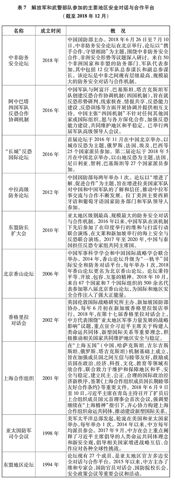 中國(guó)加強(qiáng)同非洲、拉美和加勒比、南太平洋等地區(qū)發(fā)展中國(guó)家的軍事交往,開展人員培訓(xùn)和中青年軍官交流,幫助有關(guān)國(guó)家加強(qiáng)軍隊(duì)建設(shè)、提高防御能力。2018年,在北京舉辦中非防務(wù)安全論壇、中拉高級(jí)防務(wù)論壇、中加(勒比)南(太平洋)高級(jí)防務(wù)研討班。