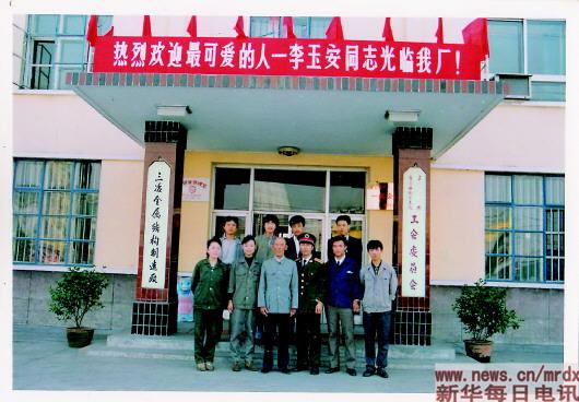 ▲這是李玉安生前到工廠作報(bào)告的照片(翻拍照片)?!⌒氯A社記者何山攝