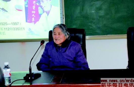 ▲這是李玉安的老伴在給學(xué)生講述李玉安的故事?!⌒氯A社發(fā)