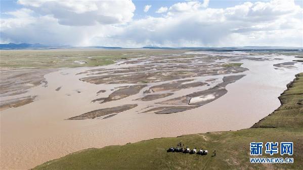 8月8日,長(zhǎng)江科學(xué)院科考隊(duì)在青海省玉樹(shù)藏族自治州治多縣的囊極巴隴進(jìn)行科考(無(wú)人機(jī)拍攝)。新華社記者 吳剛 攝