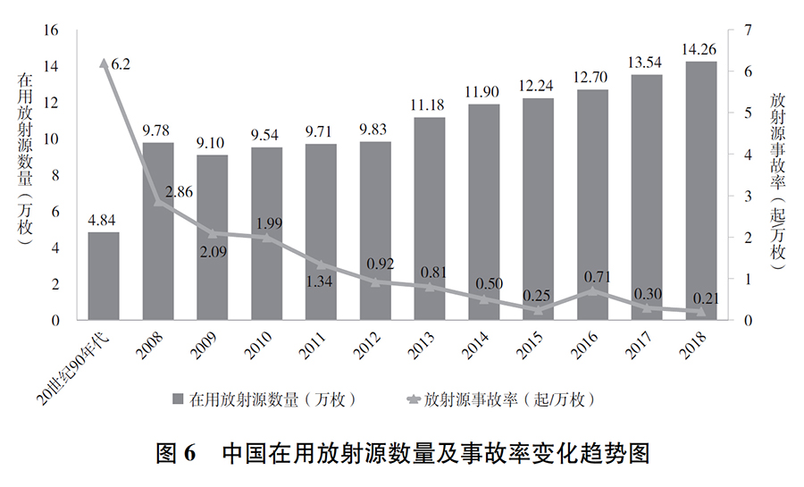 核技術(shù)利用安全水平大幅提升。對放射源實行從“搖籃”到“墳?zāi)埂钡娜^程動態(tài)管理,將所有涉源單位納入政府監(jiān)管范圍,建立國家核技術(shù)利用管理數(shù)據(jù)庫,實施放射源安全提升行動,實現(xiàn)高風(fēng)險移動源在線實時監(jiān)控,提高核技術(shù)利用安全水平。截至2019年6月,中國在用放射源142607枚,各類射線裝置181293臺(套),從事生產(chǎn)、銷售、使用放射性同位素和射線裝置的單位共73070家,放射源和射線裝置100%納入許可管理,廢舊放射源100%安全收貯。放射源輻射事故年發(fā)生率持續(xù)降低,由20世紀(jì)90年代的每萬枚6.2起降至目前的每萬枚1.0起以下,達到歷史最低水平。