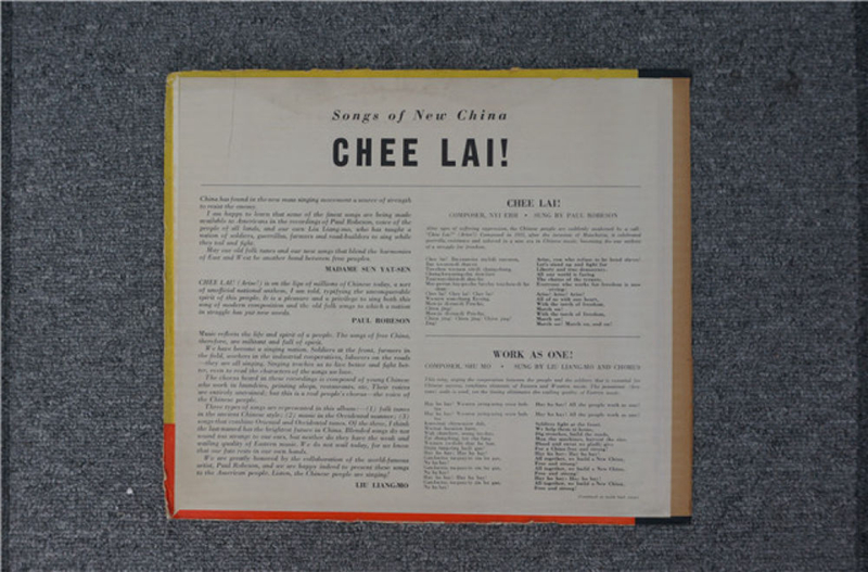 這第二張唱片是美國黑人歌手保羅·羅伯遜于1941年所灌制的《CheeLai》。單看這個封面上的英文字母,我們就能讀出兩個字——起來!