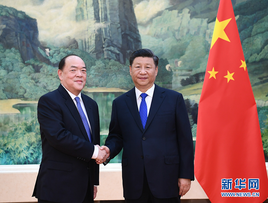 9月11日,國(guó)家主席習(xí)近平在人民大會(huì)堂會(huì)見(jiàn)新當(dāng)選并獲中央政府任命的澳門特別行政區(qū)第五任行政長(zhǎng)官賀一誠(chéng)。 新華社記者 謝環(huán)馳 攝