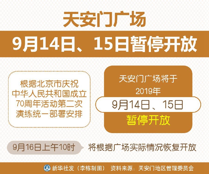 天安門廣場(chǎng)9月14日、15日暫停開放-新華網(wǎng)