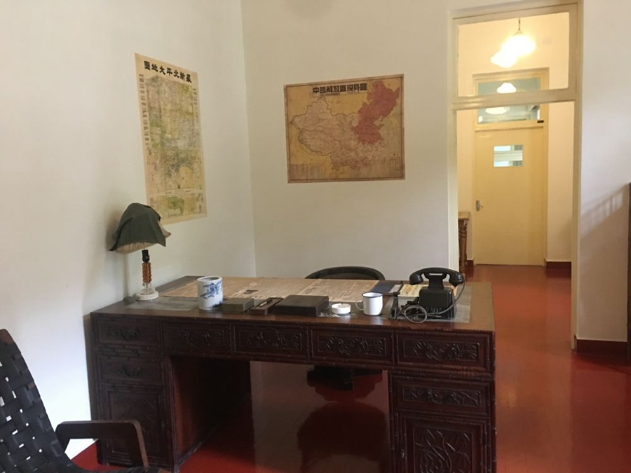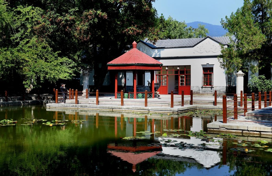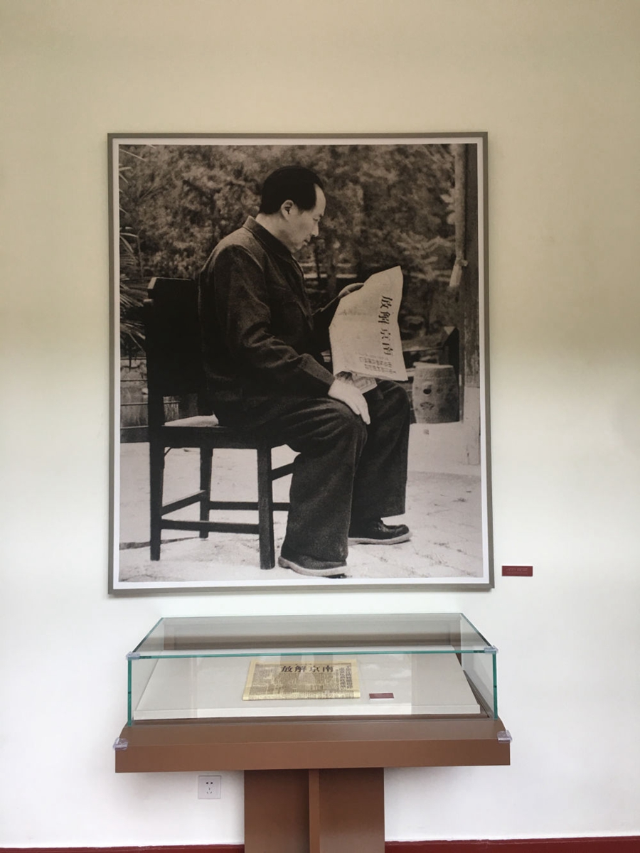 雙清別墅里,簡樸的桌椅家具,墻上的地圖,桌上的紙筆書報,還原著革命勝利前夜,開國領(lǐng)袖在此運籌帷幄、決勝千里的場景;六角紅亭前,當(dāng)年毛主席坐在木椅上閱讀《進步日報》“南京解放”報道的畫面,如在眼前。