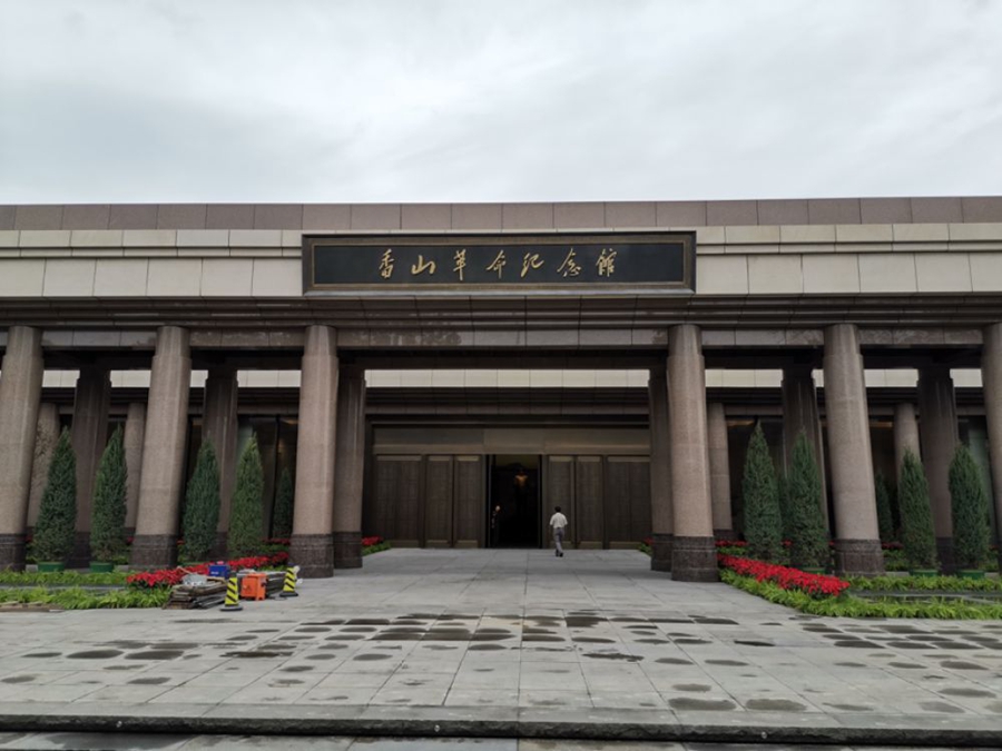 香山腳下,新落成的香山革命紀(jì)念館莊重大氣,“四梁八柱”的雨棚造型寓意黨中央在此為新中國搭建四梁八柱。