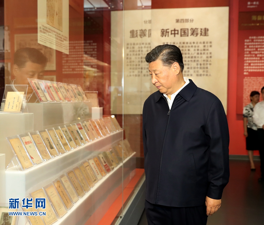 9月12日,中共中央總書記、國家主席、中央軍委主席習(xí)近平視察中共中央北京香山革命紀(jì)念地。這是習(xí)近平在香山革命紀(jì)念館參觀《為新中國奠基》主題展覽。 新華社記者 黃敬文 攝