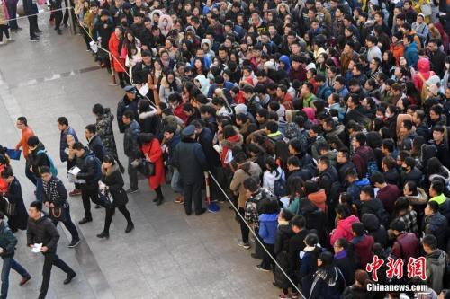 資料圖:山西太原一公務(wù)員考點,考生排隊準備進入考場。武俊杰 攝