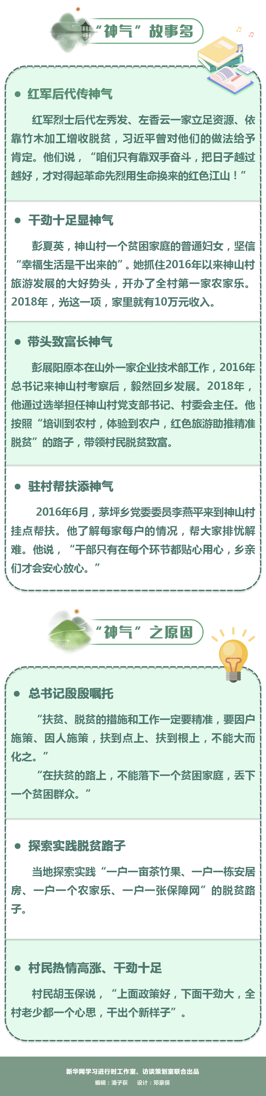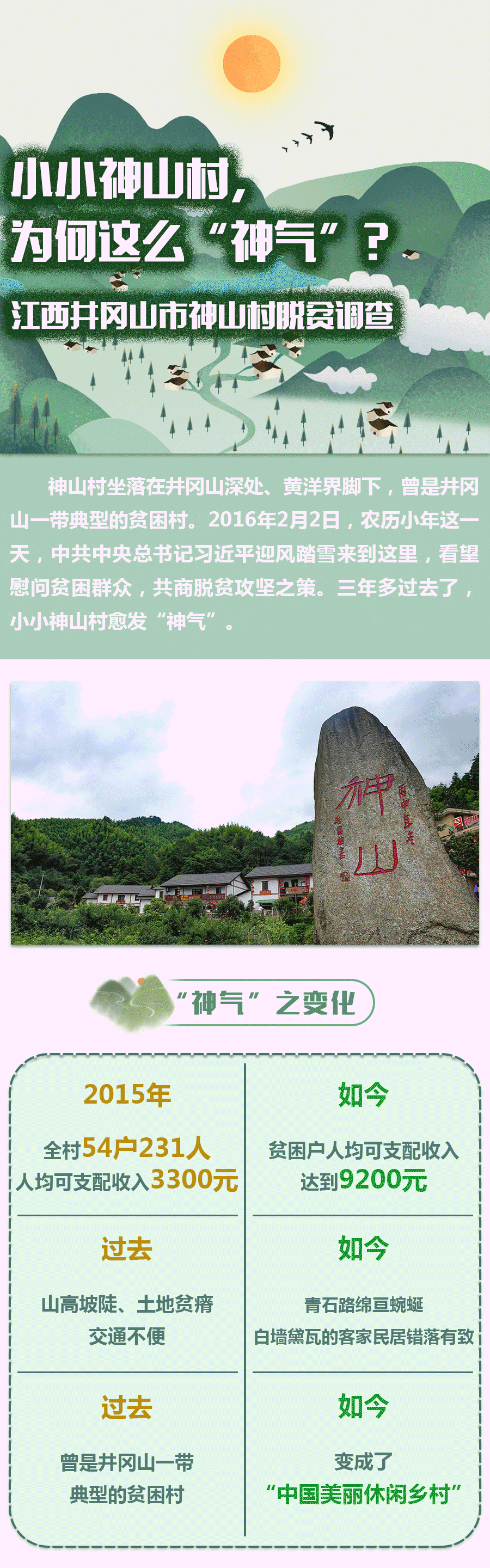 小小神山村,像這樣的故事還很多。在跨越時空的井岡山精神鼓舞下,神山村正闊步行進(jìn)在新時代鄉(xiāng)村振興的大路上,必將書寫更多新的“神氣”故事。