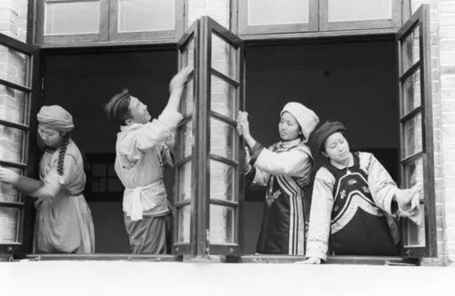 1952年7月31日,西南民族學院的師生開展校舍和個人清潔衛(wèi)生活動(新華社記者孫忠靖 攝)