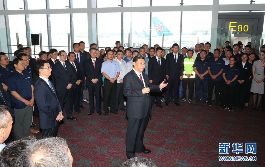 大興機場航站樓,是目前全球最大規(guī)模的單體航站樓,以其獨特的造型設(shè)計、精湛的施工工藝、便捷的交通組織、先進(jìn)的技術(shù)應(yīng)用,創(chuàng)造了許多世界之最。航站樓里,流線型的空間結(jié)構(gòu)十分寬敞明亮。習(xí)近平步行巡覽站臺大廳和值機大廳,實地了解值機、安檢、登機和殘疾人無障礙設(shè)施等情況,并結(jié)合沙盤和模型聽取機場總體規(guī)劃、設(shè)施建設(shè)等介紹。習(xí)近平強調(diào),大興國際機場是首都的重大標(biāo)志性工程,是推動京津冀協(xié)同發(fā)展的骨干工程。京津冀三地要抓住機遇加強協(xié)同合作,加快推動地區(qū)高質(zhì)量發(fā)展。民航業(yè)是國家重要的戰(zhàn)略產(chǎn)業(yè)。要建設(shè)更多更先進(jìn)的航空樞紐、更完善的綜合交通運輸系統(tǒng),加快建設(shè)交通強國。