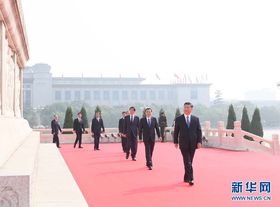 9月30日上午,習近平、李克強、栗戰(zhàn)書、汪洋、王滬寧、趙樂際、韓正、王岐山等黨和國家領(lǐng)導(dǎo)人來到北京天安門廣場,出席烈士紀念日向人民英雄敬獻花籃儀式。儀式前,習近平等來到毛主席紀念堂瞻仰毛澤東同志遺容。新華社記者 鞠鵬 攝