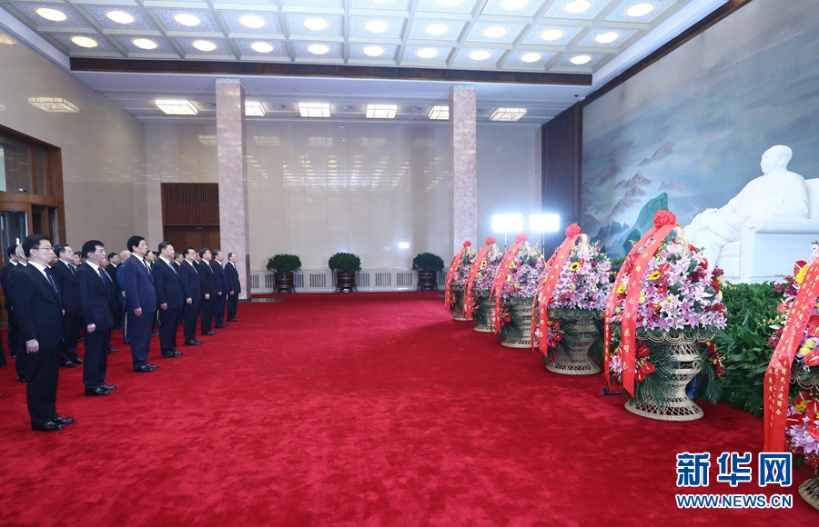 敬獻花籃儀式前,習近平、李克強、栗戰(zhàn)書、汪洋、王滬寧、趙樂際、韓正、王岐山等領(lǐng)導(dǎo)同志來到毛主席紀念堂。北大廳內(nèi),中共中央,全國人大常委會,國務(wù)院,全國政協(xié),中央軍委,各民主黨派、全國工商聯(lián)和無黨派愛國人士敬獻的花籃擺放在毛澤東同志坐像正前方。習近平等向毛澤東同志坐像三鞠躬,隨后來到瞻仰廳,瞻仰毛澤東同志遺容,表達對毛澤東同志等老一輩革命家的深切緬懷。