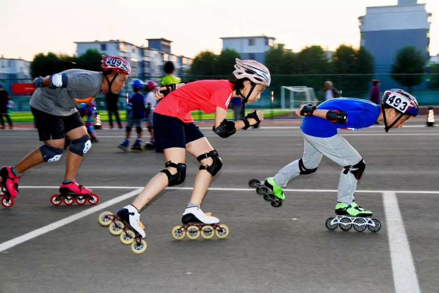 8月31日,遼寧沈陽。少年們在進行輪滑訓練,為冬季上冰打基礎。作者:周朋