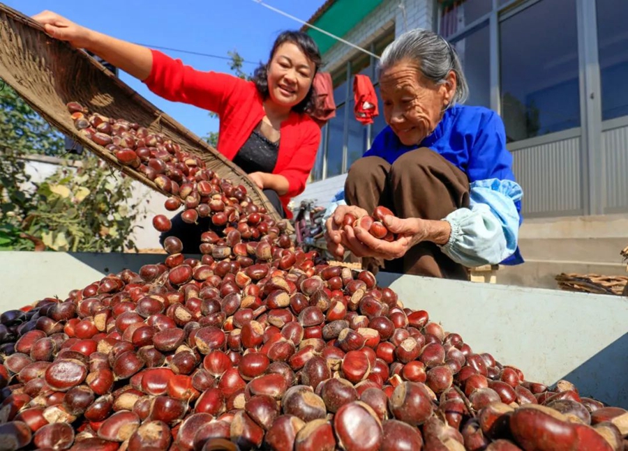 9月26日,河北遵化。東舊寨鎮(zhèn)果農(nóng)們迎來核桃大豐收。作者:小溪