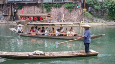 早晨起床后,他打開(kāi)窗戶,神奇的天門(mén)山突然呈現(xiàn)在他的面前,不遠(yuǎn)處是金黃的稻田,裊裊炊煙,溪流潺潺。