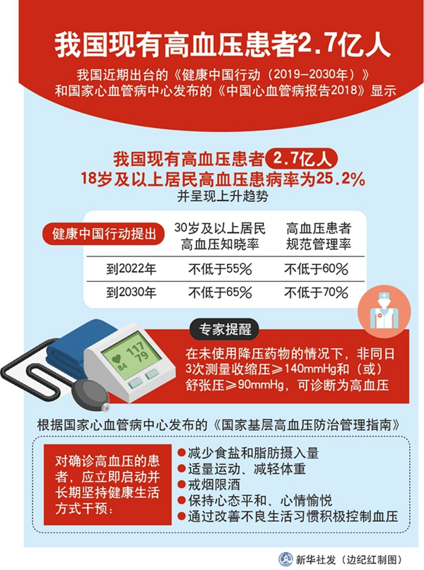 新華社北京10月24日電 題:我國(guó)高血壓患者2.7億 該如何穩(wěn)住我們的血壓?
