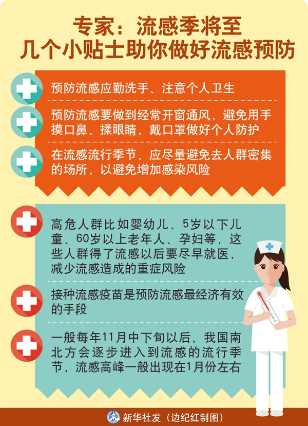 接種流感疫苗是預(yù)防流感最經(jīng)濟(jì)有效的手段。王大燕說,對(duì)于6-23月齡的嬰幼兒、2-5歲兒童、60歲及以上老年人、特定慢性病患者、醫(yī)務(wù)人員、6月齡以下嬰兒的家庭成員和看護(hù)人員以及孕婦或準(zhǔn)備在流感流行季節(jié)懷孕的女性等,建議在流感流行季節(jié)到來前優(yōu)先接種流感疫苗。