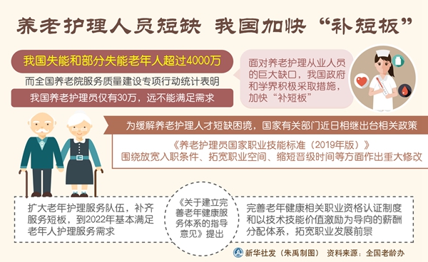新華社北京11月5日電(記者田曉航)來(lái)自全國(guó)老齡辦的數(shù)據(jù)顯示,我國(guó)失能和部分失能老年人超過(guò)4000萬(wàn),而全國(guó)養(yǎng)老院服務(wù)質(zhì)量建設(shè)專項(xiàng)行動(dòng)統(tǒng)計(jì)表明,我國(guó)養(yǎng)老護(hù)理員僅有30萬(wàn),遠(yuǎn)不能滿足需求。面對(duì)養(yǎng)老護(hù)理從業(yè)人員的巨大缺口,我國(guó)政府和學(xué)界積極采取措施,加快“補(bǔ)短板”。