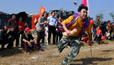11月9日,一只藏狐在青?,斍呖h境內(nèi)的草原上活動(dòng)。新華社記者 張龍 攝