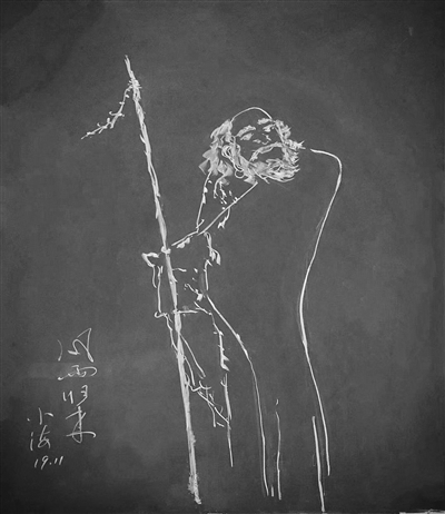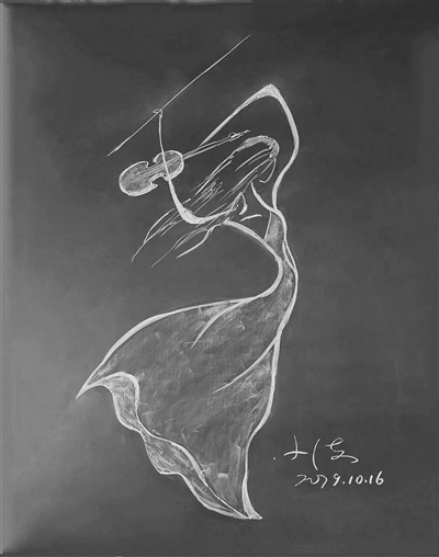 朱中海,揚州高等職業(yè)技術學?;A教育部主任、數(shù)學教師。今年57歲的他,已教了35年數(shù)學。揚子晚報記者昨日找到朱老師,看到了他去年和今年“創(chuàng)作”的粉筆畫。之所以要用“創(chuàng)作”這個顯得正式的詞語,因為記者眼里的這些粉筆畫,雖寥寥數(shù)筆,卻鮮活靈動,宛如藝術品。沒有一定的功力,僅僅靠一些數(shù)學上的曲線,是無法完成的。