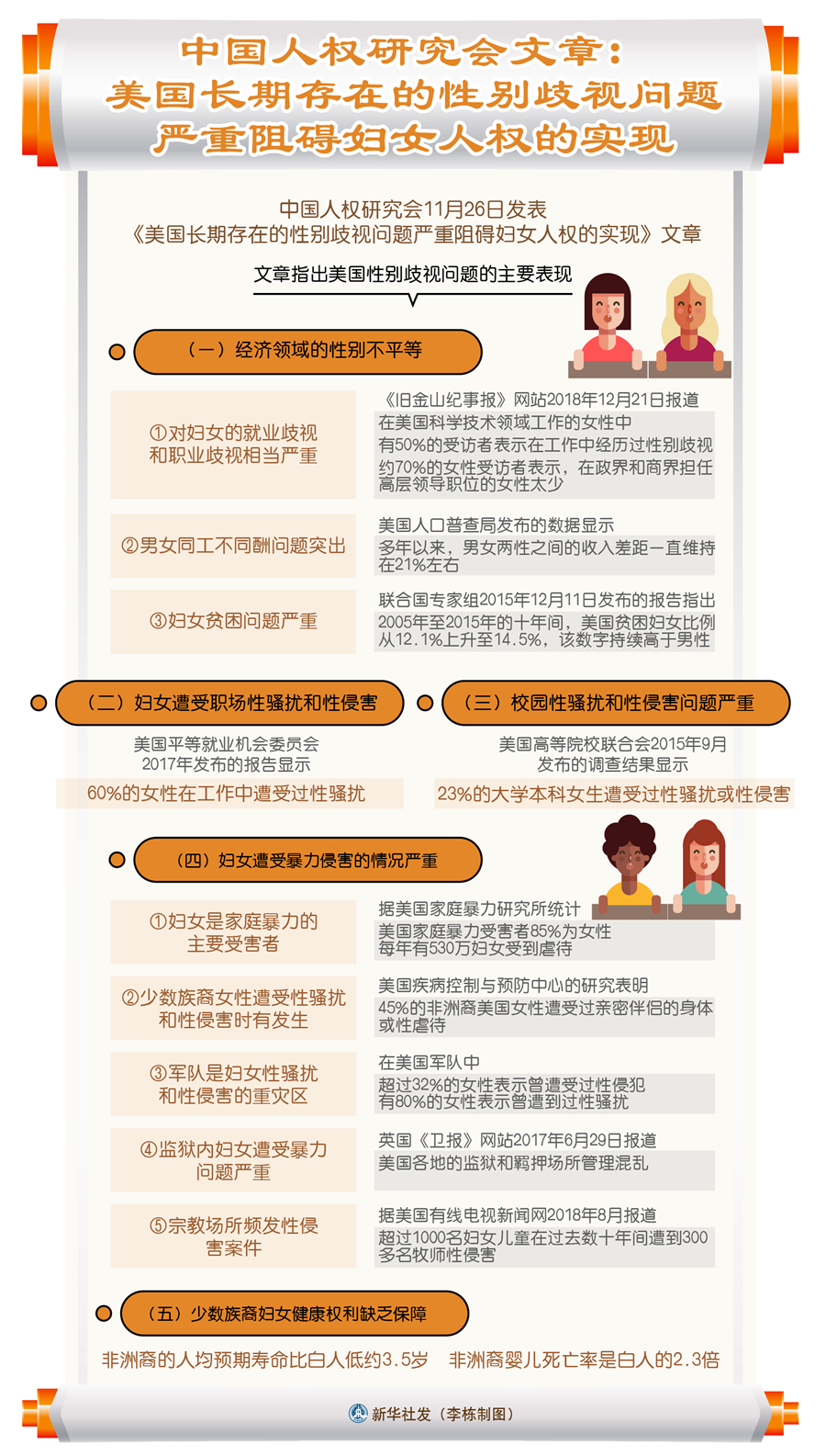 新華社北京11月26日電 中國人權(quán)研究會26日發(fā)表《美國長期存在的性別歧視問題嚴重阻礙婦女人權(quán)的實現(xiàn)》文章。全文如下: