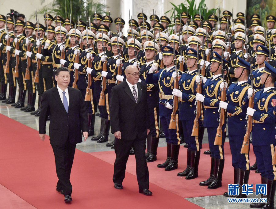 11月27日,國家主席習(xí)近平在北京人民大會堂同蘇里南總統(tǒng)鮑特瑟會談。這是會談前,習(xí)近平在人民大會堂北大廳為鮑特瑟舉行歡迎儀式。 新華社記者 岳月偉 攝