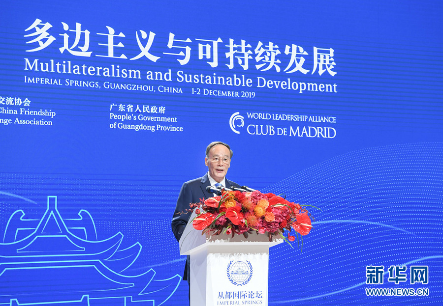新華社廣州12月1日電(記者孫奕、徐弘毅)國家副主席王岐山1日在廣州出席“2019從都國際論壇”開幕式并致辭。
