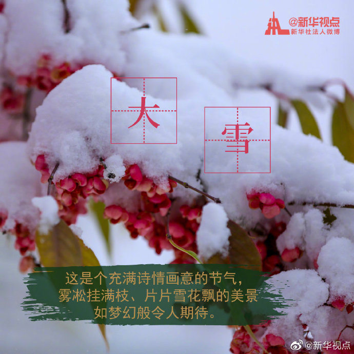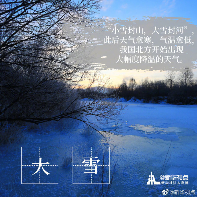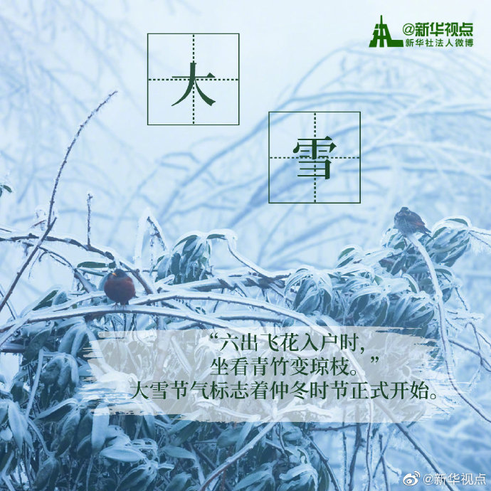“白雪紛紛何所似?未若柳絮因風起?!苯裉?8時18分迎來“大雪”節(jié)氣。相較于“小雪”節(jié)氣,“大雪”節(jié)氣時,氣溫不斷下降,雪量不斷增大,下雪天數(shù)不斷增加。天氣漸冷,注意添衣保暖。?
