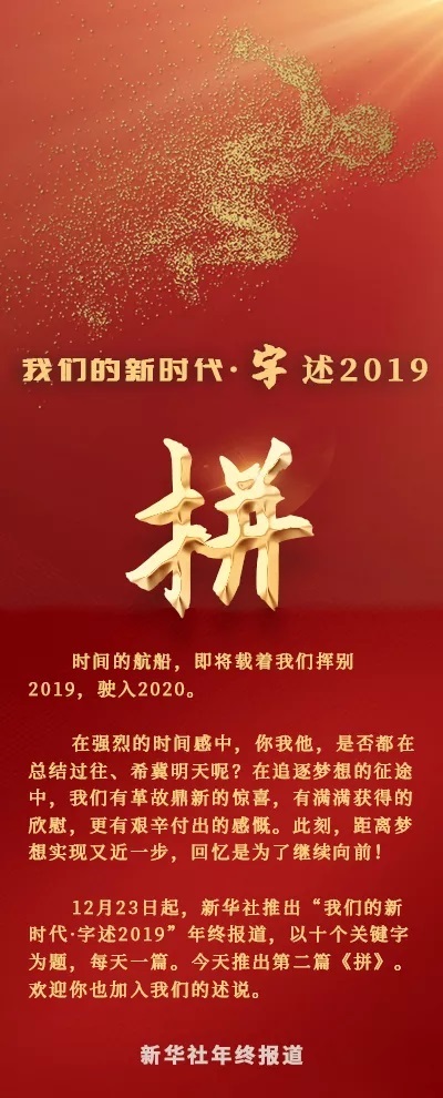 你,我,他,億萬人民敢拼敢干的勁兒,匯聚成中國氣派的時代洪流?!捌础毕蛭磥?,“拼”向夢想,讓我們書寫屬于祖國、也屬于自己的奮斗篇章。