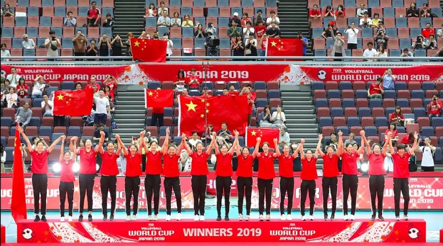 中國女排又一次登上世界冠軍領(lǐng)獎臺。在新中國成立70周年前夕,喜訊傳來,舉國振奮?!白鎳辽稀F(tuán)結(jié)協(xié)作、頑強(qiáng)拼搏、永不言敗”,女排精神代表著一個時代的精神,喊出了為中華崛起而拼搏的時代最強(qiáng)音。