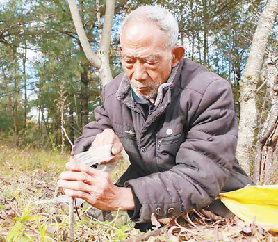 楊廷相不想放棄。隊(duì)上見(jiàn)他堅(jiān)持,就沒(méi)有再反對(duì)。這樣,楊廷相“爬爬跪跪”進(jìn)了林地,在密林深處搭起了一個(gè)窩棚,從此過(guò)著“天不亮就起,天不黑不歸”的生活。妹妹楊廷花每天給大哥送點(diǎn)包谷面和咸菜。家里人苦勸他幾次回家未果后,也就放棄了。楊廷相守林“認(rèn)樹(shù)不認(rèn)人”,但又注意方式方法,發(fā)現(xiàn)有人偷砍,他會(huì)在砍鑿處釘上一顆釘子,偷砍者下次就不好再動(dòng)手了。10年寒暑,楊廷相照看的林地始終是真峰村最好的。楊科禁不住感嘆,真沒(méi)想到,殘疾人比正常人管得還好!