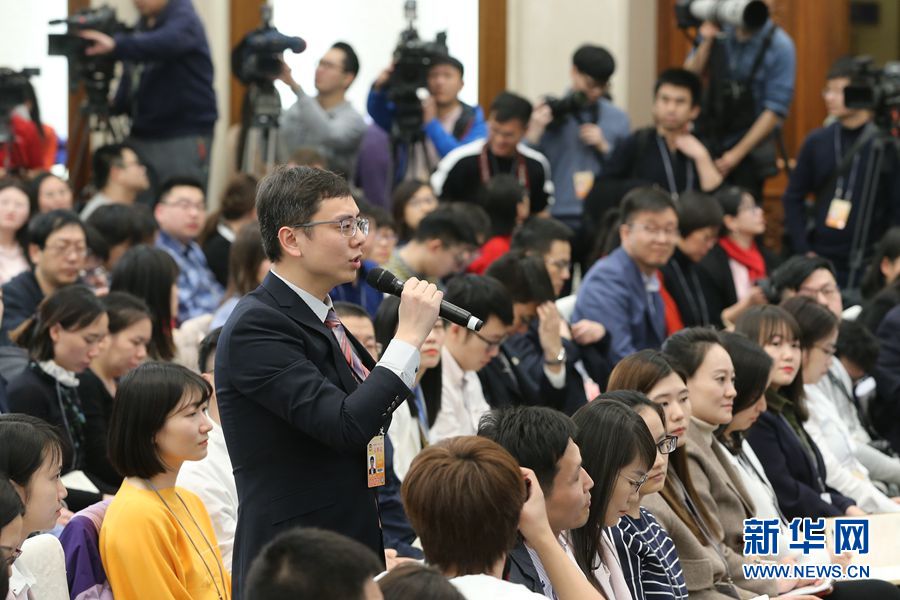 全國政協(xié)十三屆二次會議新聞發(fā)布會于3月2日15:00在人民大會堂一層新聞發(fā)布廳召開,大會新聞發(fā)言人郭衛(wèi)民向中外媒體介紹本次大會有關情況并回答記者提問。圖為新華社記者提問。新華社記者 邢廣利?攝?