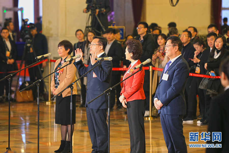 全國(guó)政協(xié)十三屆二次會(huì)議于3月3日下午3時(shí)在北京人民大會(huì)堂開(kāi)幕。新華網(wǎng)、中國(guó)政府網(wǎng)進(jìn)行現(xiàn)場(chǎng)直播。圖為全國(guó)政協(xié)委員接受采訪。新華網(wǎng)/中國(guó)政府網(wǎng)?劉廈 攝