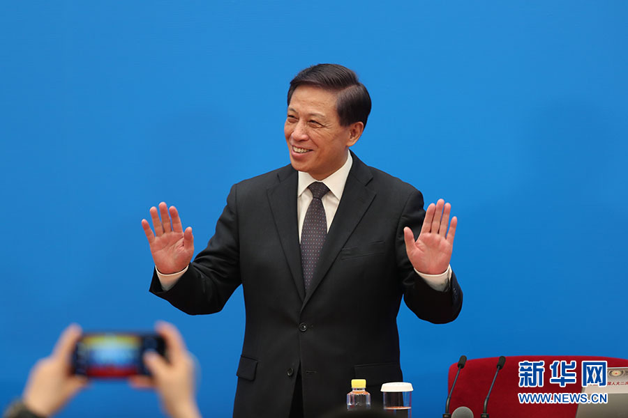十三屆全國(guó)人大二次會(huì)議3月4日上午11時(shí)15分在人民大會(huì)堂新聞發(fā)布廳舉行新聞發(fā)布會(huì),由大會(huì)發(fā)言人張業(yè)遂就大會(huì)議程和人大工作相關(guān)的問(wèn)題回答中外記者提問(wèn)。圖為張業(yè)遂向記者示意。新華網(wǎng)/中國(guó)政府網(wǎng)?陳杰 攝