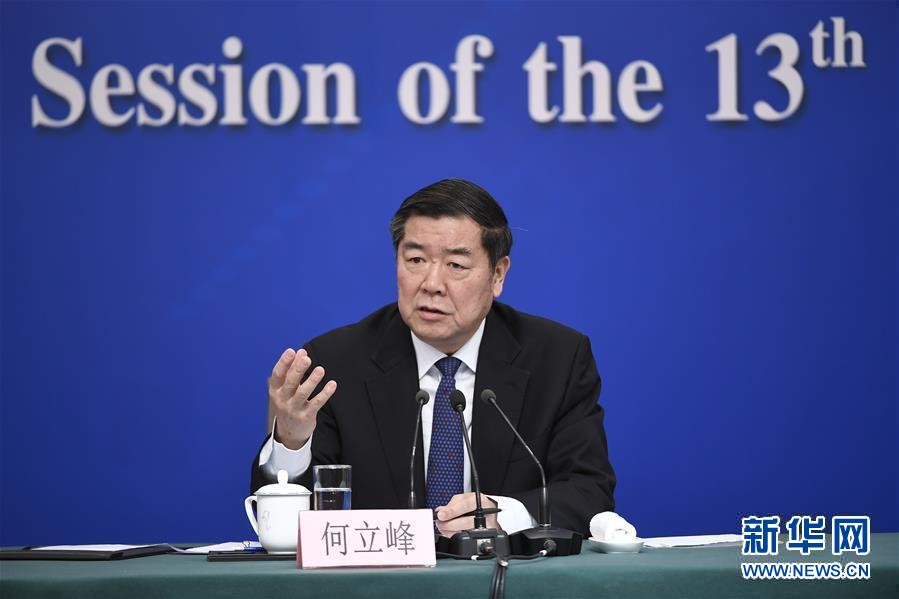 3月6日,十三屆全國人大二次會議新聞中心舉行記者會,邀請國家發(fā)展和改革委員會主任何立峰,副主任寧吉喆、連維良就“大力推動經(jīng)濟(jì)高質(zhì)量發(fā)展”相關(guān)問題回答中外記者的提問。這是何立峰在回答記者提問。 新華社記者 王鵬 攝