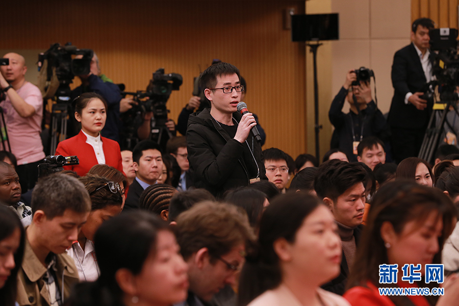 十三屆全國人大二次會議新聞中心于3月6日(星期三)上午10時在梅地亞中心新聞發(fā)布廳舉行記者會,邀請國家發(fā)展改革委主任何立峰,副主任寧吉喆、連維良就“大力推動經(jīng)濟高質量發(fā)展”相關問題回答中外記者的提問。圖為人民日報海外版記者提問。新華網(wǎng)/中國政府網(wǎng) 馬娟 攝