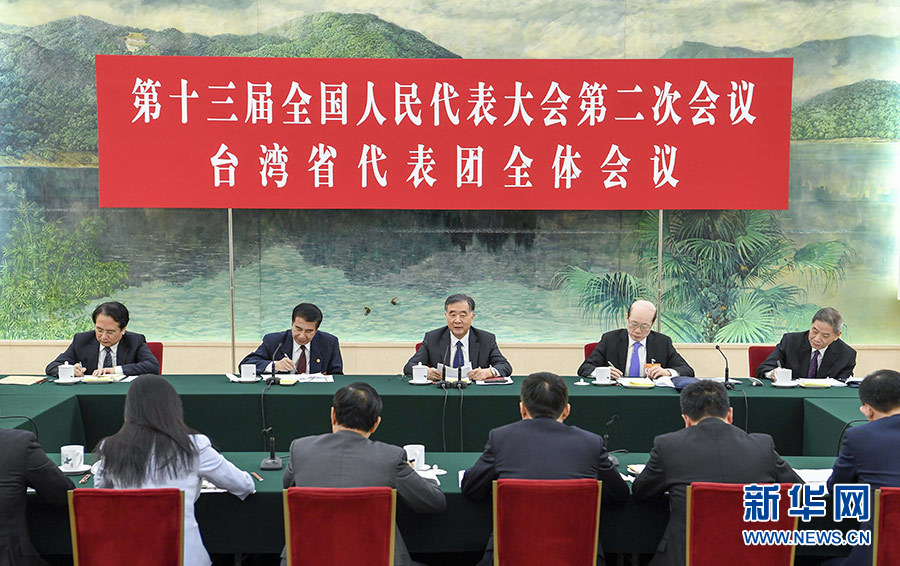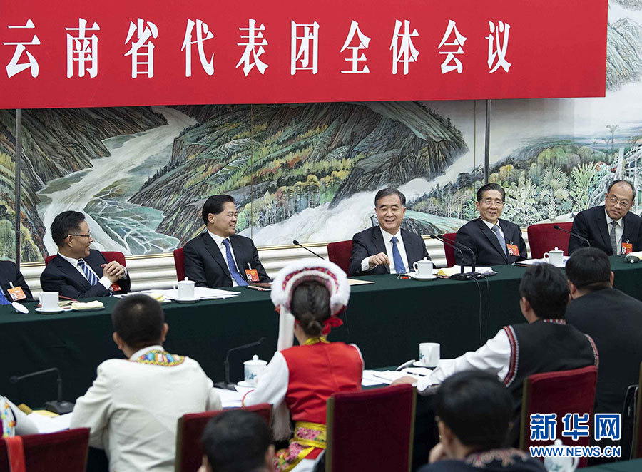 汪洋分別參加臺(tái)灣代表團(tuán)、云南代表團(tuán)審議。在臺(tái)灣代表團(tuán),汪洋在認(rèn)真聽取符之冠、陳云英、陳軍等代表發(fā)言后指出,習(xí)近平總書記在《告臺(tái)灣同胞書》發(fā)表40周年紀(jì)念會(huì)上的重要講話,是指引新時(shí)代對臺(tái)工作的綱領(lǐng)性文獻(xiàn)。要學(xué)深悟透講話的精神實(shí)質(zhì)和核心要義,深刻認(rèn)識(shí)兩岸統(tǒng)一是歷史大勢,牢牢把握對臺(tái)工作正確方向。要廣泛深入聽取臺(tái)灣同胞的意見,完善配套政策,把促進(jìn)兩岸經(jīng)濟(jì)文化交流合作“31條措施”等惠臺(tái)舉措落到實(shí)處,深化兩岸融合發(fā)展。要堅(jiān)持一個(gè)中國原則和“九二共識(shí)”,堅(jiān)決反對“臺(tái)獨(dú)”,團(tuán)結(jié)更多臺(tái)灣同胞共擔(dān)民族大義,為推動(dòng)兩岸關(guān)系和平發(fā)展、推進(jìn)祖國和平統(tǒng)一進(jìn)程作出更大貢獻(xiàn)。在云南代表團(tuán),汪洋認(rèn)真聽取阮成發(fā)、馬正山、玉龍等代表的發(fā)言,充分肯定過去一年云南改革發(fā)展取得的成績。他希望云南深入貫徹習(xí)近平總書記對云南工作的重要指示精神,堅(jiān)定不移落實(shí)黨的民族政策和宗教工作基本方針,大力幫助人口較少民族和“直過民族”發(fā)展,努力打造民族團(tuán)結(jié)進(jìn)步示范區(qū)。要堅(jiān)決打好脫貧攻堅(jiān)戰(zhàn),努力攻克深度貧困堡壘,著力提高脫貧質(zhì)量,確保全面小康路上一個(gè)都不掉隊(duì)。