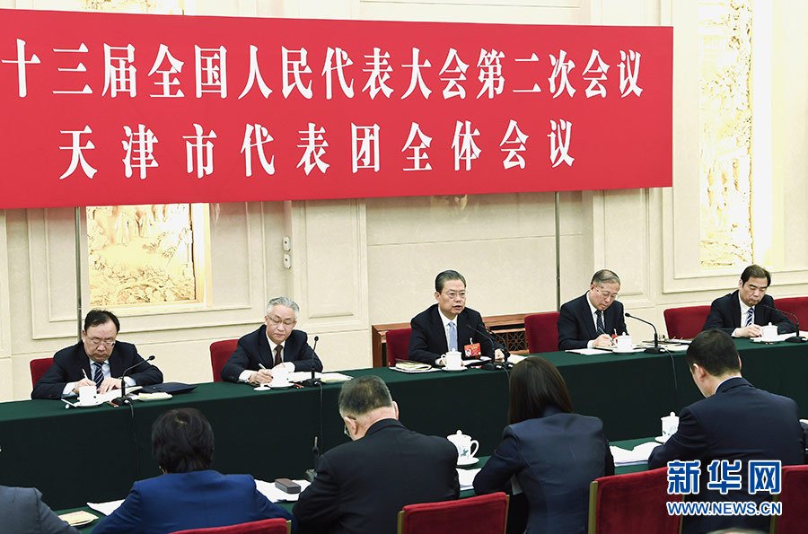 趙樂際在天津代表團(tuán)參加審議。楊茂榮、楊寶玲、李響等代表先后發(fā)言。趙樂際充分肯定天津工作取得的新成績,希望天津深入學(xué)習(xí)貫徹習(xí)近平新時代中國特色社會主義思想,認(rèn)真落實習(xí)近平總書記關(guān)于京津冀協(xié)同發(fā)展和視察天津時的重要指示,抓住戰(zhàn)略機(jī)遇期,提高自主創(chuàng)新能力,大力發(fā)展實體經(jīng)濟(jì),保障和改善民生,加快建設(shè)“五個現(xiàn)代化天津”,以實際行動踐行“兩個維護(hù)”,以實際成效增強(qiáng)人民群眾獲得感幸福感安全感。趙樂際強(qiáng)調(diào),統(tǒng)籌推進(jìn)“五位一體”總體布局、協(xié)調(diào)推進(jìn)“四個全面”戰(zhàn)略布局,全面從嚴(yán)治黨是重要戰(zhàn)略任務(wù)、也是重要政治保證。要持之以恒正風(fēng)反腐、標(biāo)本兼治,一體推進(jìn)不敢腐、不能腐、不想腐,不斷把全面從嚴(yán)治黨引向深入。
