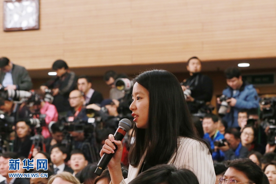 十三屆全國人大二次會議新聞中心3月8日10時在梅地亞中心新聞發(fā)布廳舉行記者會,邀請國務(wù)委員兼外交部長王毅就“中國外交政策和對外關(guān)系”相關(guān)問題回答中外記者提問。圖為人民日報記者提問。新華網(wǎng)/中國政府網(wǎng)?馬娟 攝